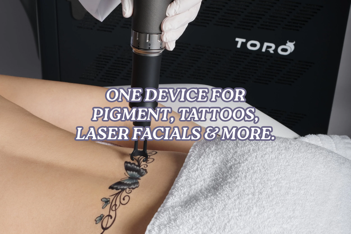 Toro is a modern laser platform designed to target pigment at multiple depths in the skin. Unlike older laser systems that rely on fixed settings, Toro allows treatments to be customized based on skin tone, pigment type, ink color, and treatment goals.